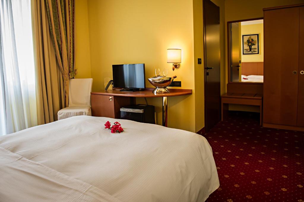 Le camere sono climatizzate e dotate di pavimenti in parquet o moquette. Offrono una TV a schermo piatto con canali satellitari e un bagno privato. Alcune dispongono di un balcone. Il ristorante Christian e Manuel dell’hotel è stato insignito di una stella Michelin ed è rinomato per i suoi 20 diversi tipi di risotto e per altri piatti tipici locali.