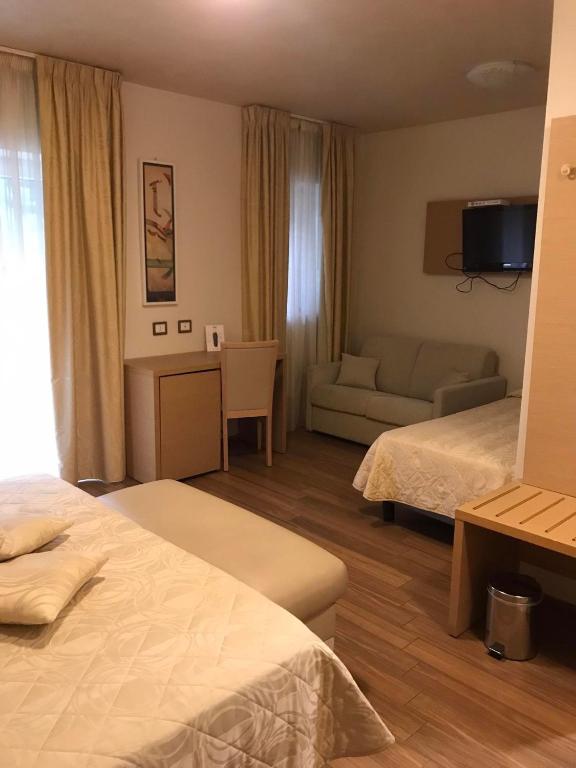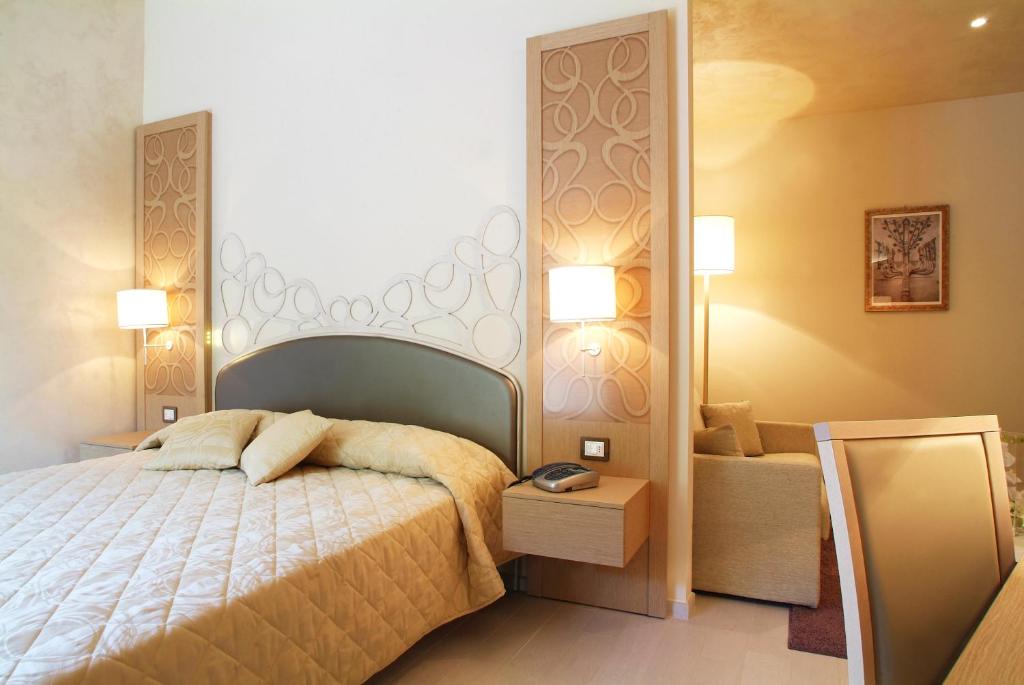Junior suite comoda e spaziosa con divano, balcone affacciato sul parco e bagno interno con doccia. Il WiFi gratuito è incluso.