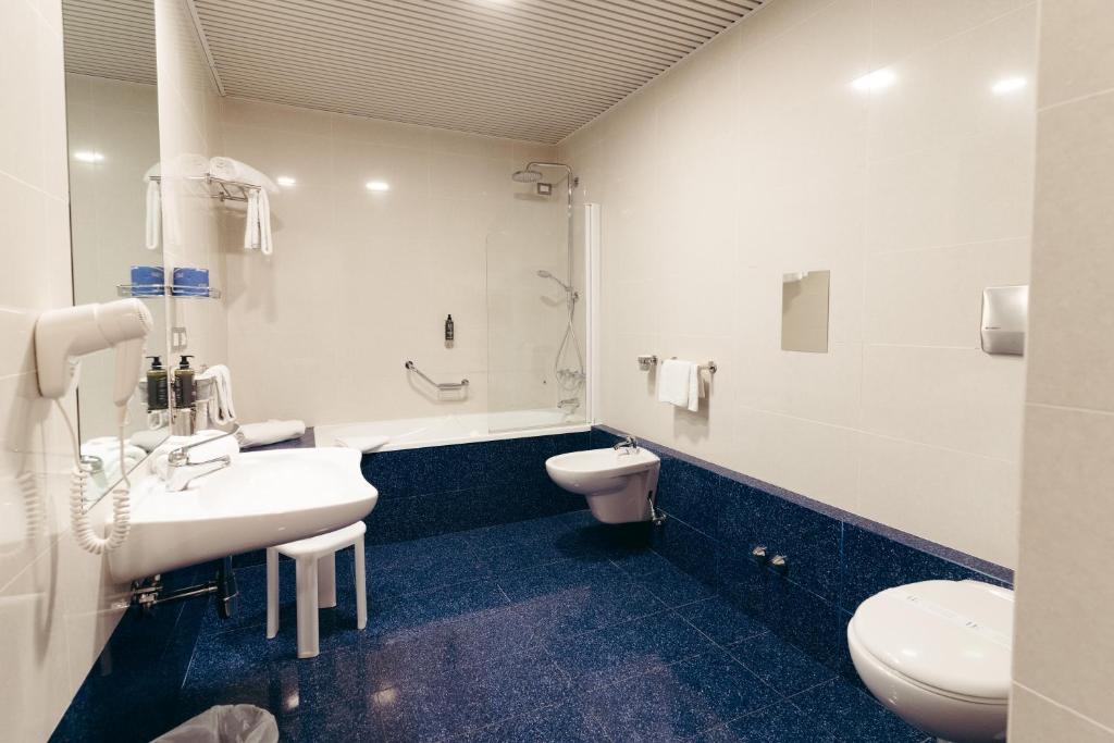 Tutti gli alloggi includono un bagno in marmo con vasca o doccia e asciugacapelli.