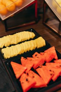 La colazione consiste in un buffet a base di prodotti dolci o salati, tra cui salumi, formaggi, croissant e torte fatte in casa. Dotate di arredi funzionali e moderni, le sistemazioni dell’Excelsior sono provviste di finestre che si affacciano sul cortile e su una strada privata.