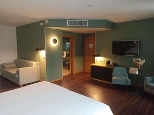 Camera insonorizzata dotata di WiFi gratuito, aria condizionata, TV full HD, moderno materasso e letto Dorelan, minibar e set per la preparazione di tè e caffè. Offre tessuti moderni e pavimenti in parquet.