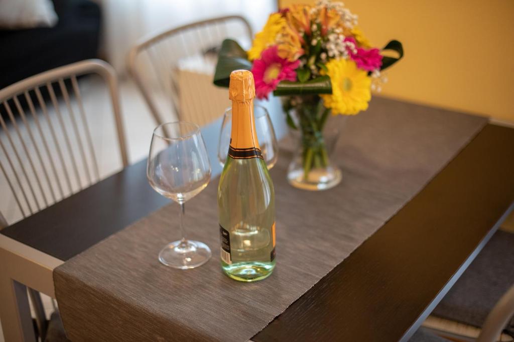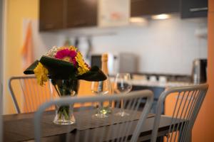 Ogni alloggio presenta un balcone con vista sulla città, una TV a schermo piatto, una zona salotto, un angolo cottura e un bagno privato dotato di bidet, set di cortesia e asciugacapelli.