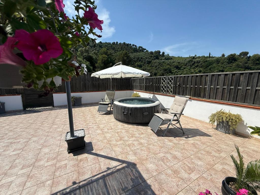 The hot tub is a top feature of this apartment. This spacious apartment comes with 1 living room, 1 separate bedroom and 1 bathroom with a shower and a bidet. Guests will find a stovetop, a refrigerator, a dishwasher and kitchenware in the well-fitted kitchen. The apartment also includes a barbecue. The apartment has a washing machine, a private entrance, soundproof walls as well as a terrace with sea views. The unit has 2 beds.