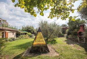 Questo agriturismo ha 1 camera da letto, 1 bagno, lenzuola, asciugamani, una TV, una cucina con utensili e una terrazza con la vista sul giardino. Se desiderate esplorare la zona, potrete praticare il ciclismo nei dintorni.