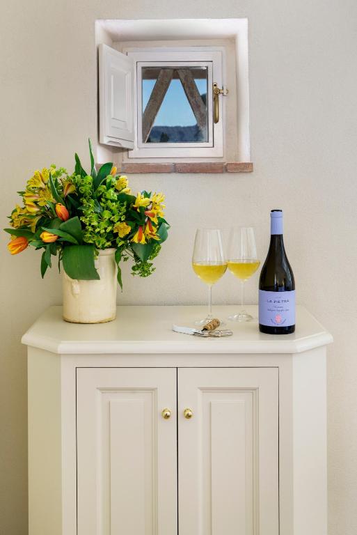 Non manca poi la TV a schermo piatto e il bagno privato con bidet. Tutte le camere dispongono di un bollitore elettrico, mentre alcune hanno anche una terrazza. Presso La Pietra Del Cabreo, tutte le camere sono dotate di lenzuola e asciugamani.