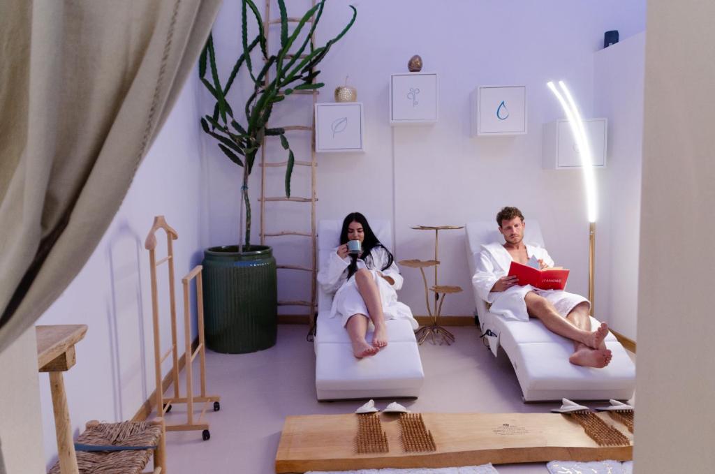 This double room's standout features are the hot tub and sauna. The well-equipped kitchen features a refrigerator, a tea and coffee maker and a toaster. The spacious double room provides air conditioning, a minibar, a terrace with a quiet street view as well as a private bathroom featuring a bath. The unit offers 1 bed.