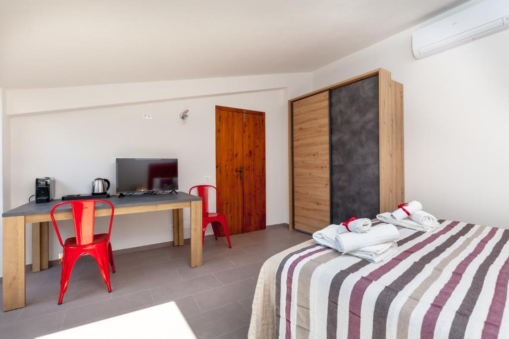 The spacious double room provides air conditioning, a tea and coffee maker, as well as a private bathroom featuring a shower and a bidet. The unit offers 3 beds.