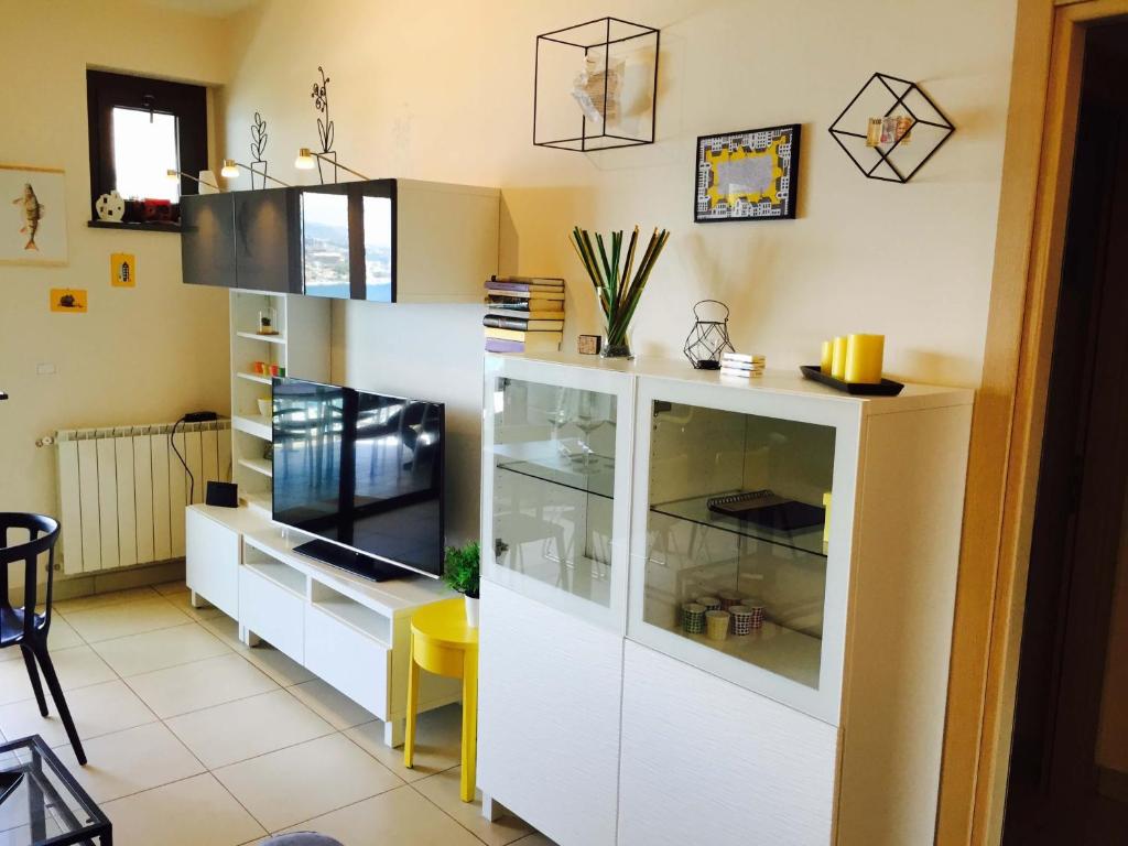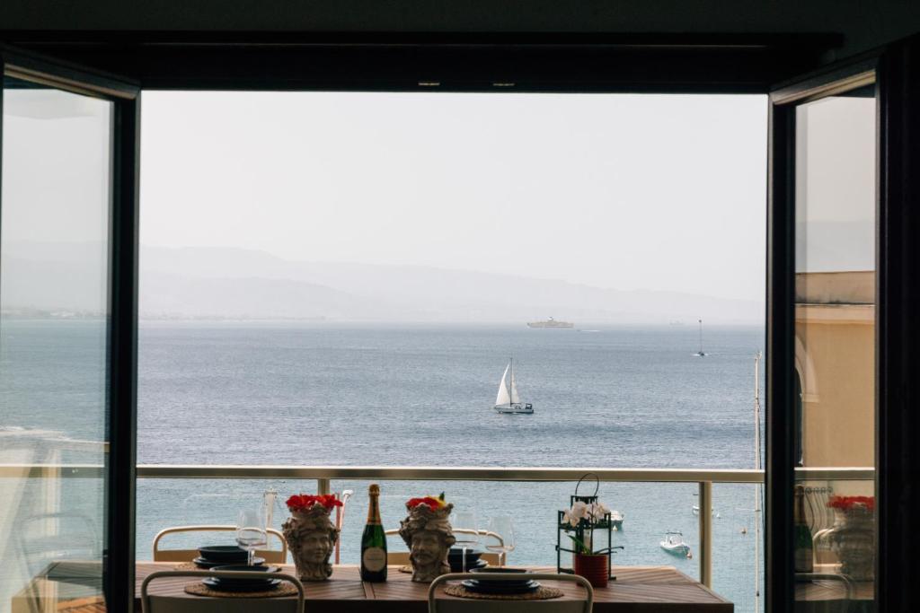 This modern furnished apartment has a spacious living area and a balcony with views of the Straits of Messina.