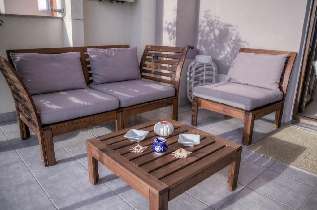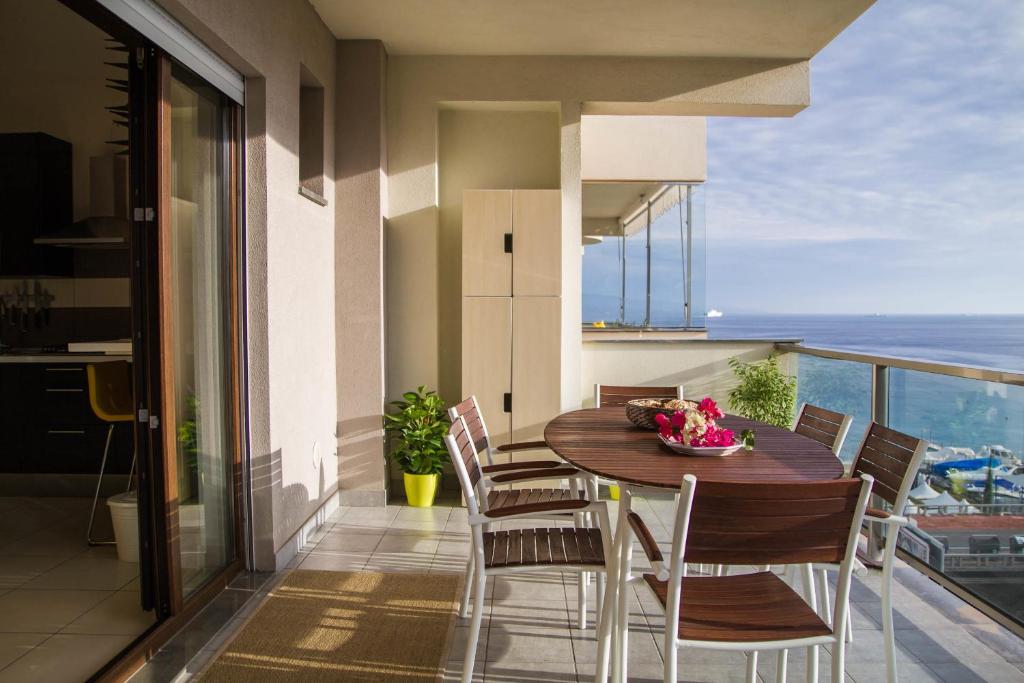 This air-conditioned apartment has a kitchenette, living area and sea-view balcony. Free WiFi is available.