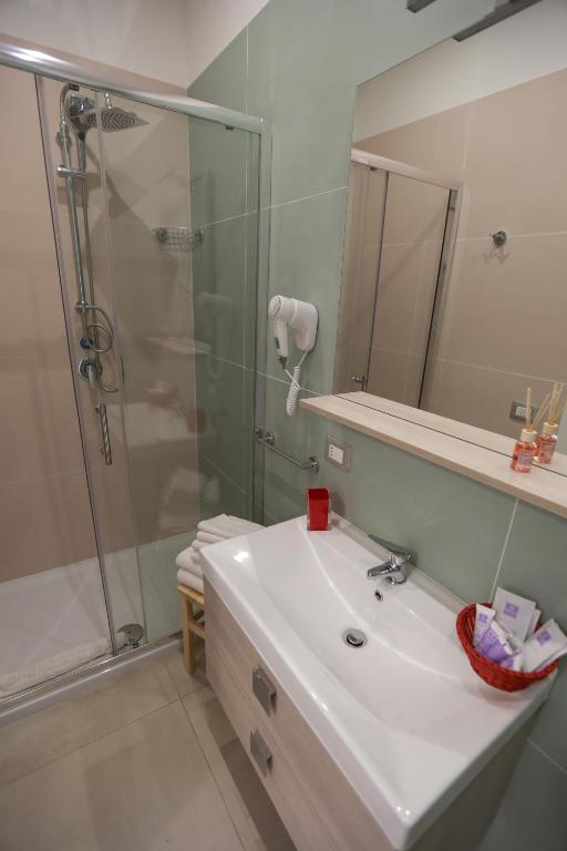 Ogni alloggio presenta un bagno privato con bidet, l’aria condizionata, una TV a schermo piatto e un frigorifero.