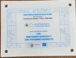 È possibile verificare la regolarità del CIN della struttura sul sito del Ministero del Turismo: Ricerca CINLocalità vicino a Maria Maddalena home, Bari
