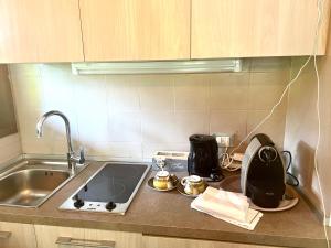 The studio's kitchen, which has a stovetop and a refrigerator, is available for cooking and storing food. The studio features a washing machine, a tea and coffee maker, a terrace with garden views as well as a private bathroom boasting a hairdryer. The unit has 2 beds.