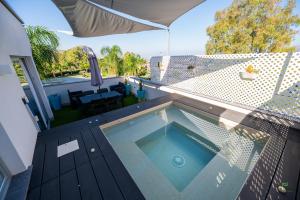 This apartment's standout features are the pool with a view, hot tub and spa bath. Boasting a private entrance, this air-conditioned apartment includes 1 living room, 1 separate bedroom and 1 bathroom with a shower and a bidet. Guests can make meals in the kitchen that is fitted with a stovetop, a refrigerator, kitchenware and an oven. The spacious apartment offers a tea and coffee maker, a seating area, a dining area, a flat-screen TV with satellite channels, as well as sea views. The unit has 2 beds.