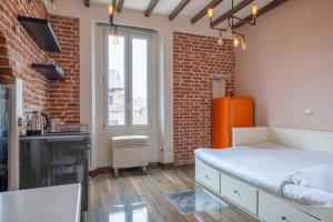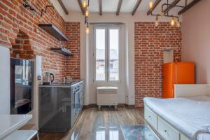The studio features air conditioning, a seating area, as well as a private bathroom boasting a shower and slippers. Meals can be prepared in the well-fitted kitchen, which features a stovetop, a refrigerator, kitchenware and an oven. The studio provides a dining area, a wardrobe, parquet floors, heating, as well as a TV. The unit has 1 bed.