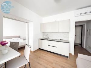 The studio provides air conditioning, a seating area, as well as a private bathroom featuring a shower and a bidet. The well-equipped kitchenette features a stovetop, a refrigerator, a dishwasher and kitchenware. The studio features a sofa, parquet floors, heating and a flat-screen TV. The unit offers 1 bed.