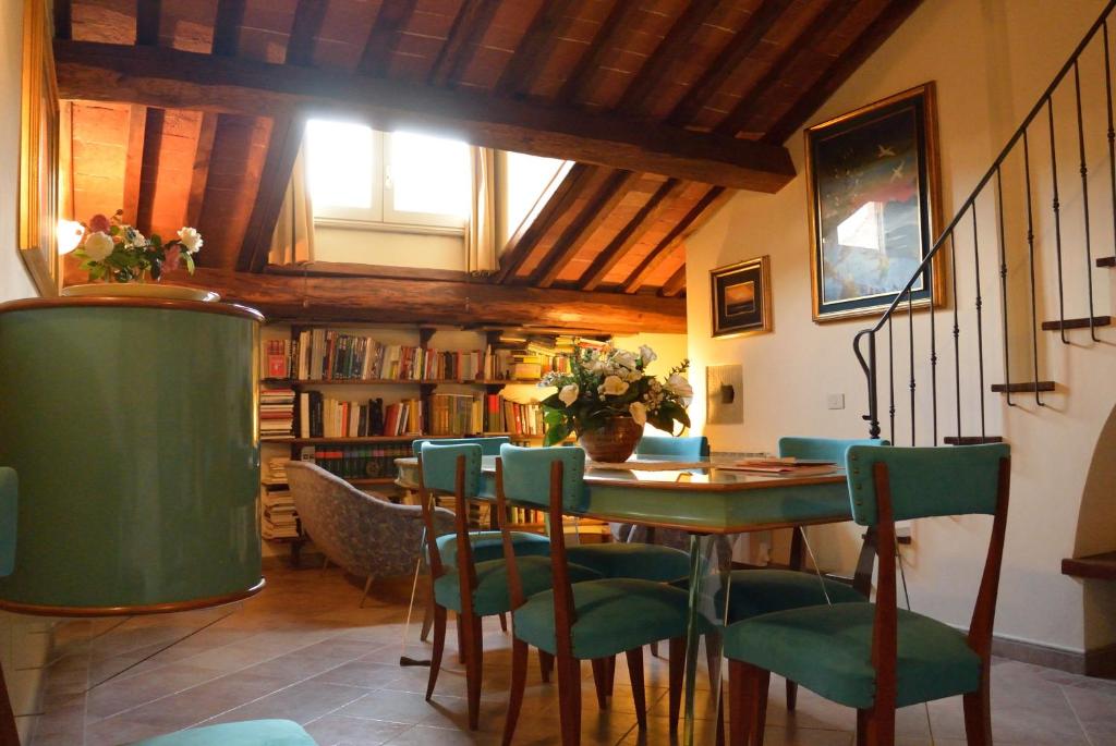 Appartamento mansardato in stile Art Déco con mobili d'epoca. Dispone di un'ampia zona pranzo con cucina e camino.