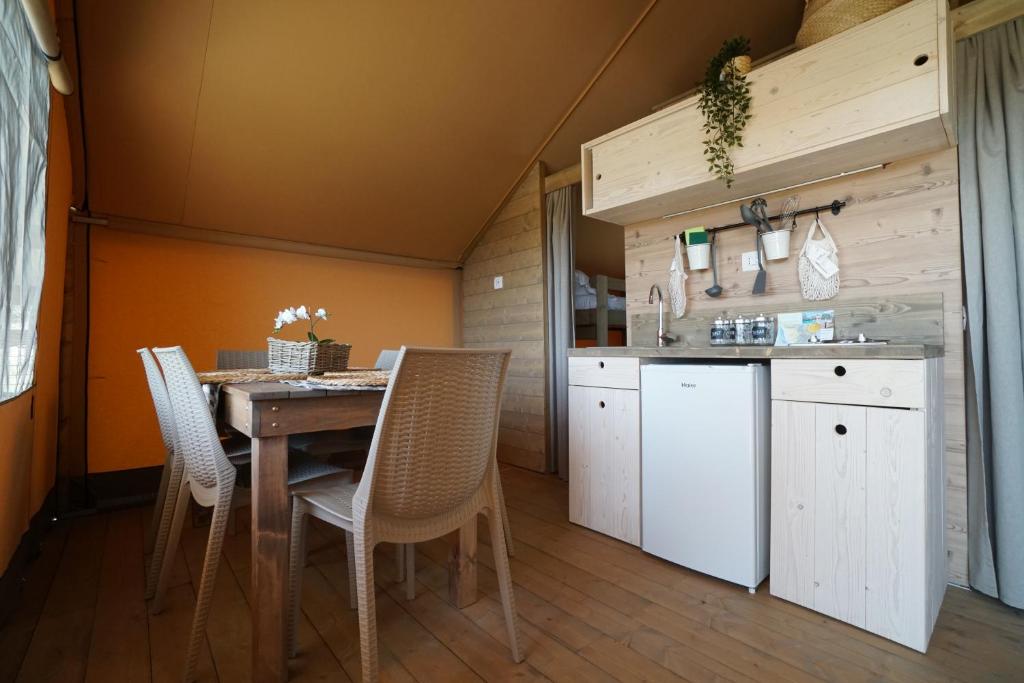 Questa tenda dispone di piano cottura, bagno privato, 2 camere da letto, bollitore elettrico e barbecue.