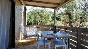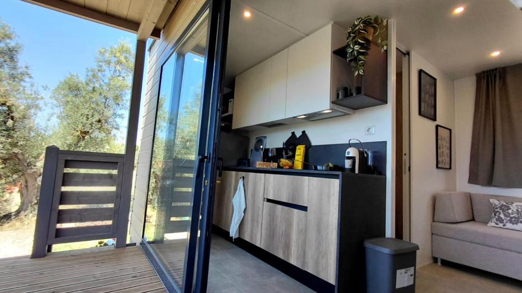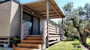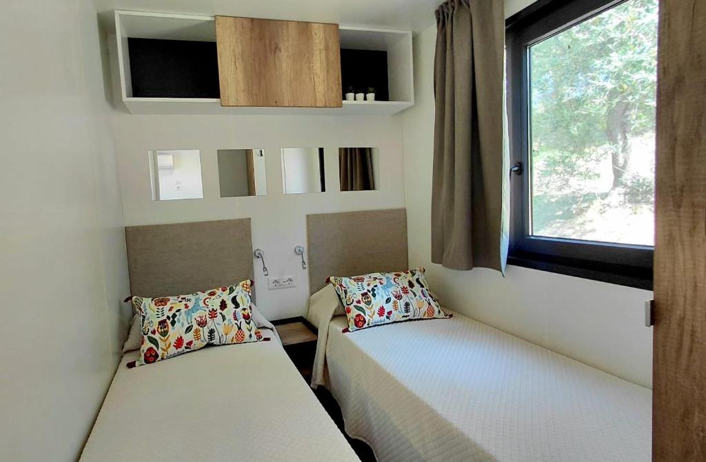Boasting a private entrance, this air-conditioned mobile home comes with 1 living room, 2 separate bedrooms and 1 bathroom with a shower and a bidet. Guests will find a stovetop, a refrigerator, kitchenware and a microwave in the fully equipped kitchen. The mobile home also includes a barbecue. Featuring a terrace with sea views, this mobile home also features a washing machine and a flat-screen TV with satellite channels. The unit has 3 beds.