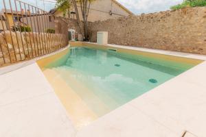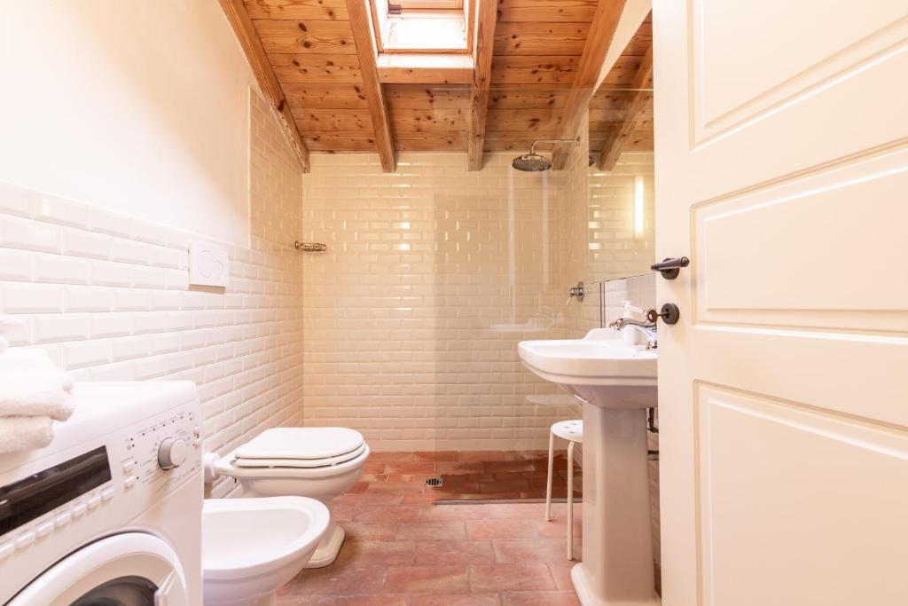 Moderno appartamento climatizzato con 2 camere da letto, soffitti con travi in legno a vista, pareti in pietra, TV a schermo piatto e angolo cottura con forno, lavastoviglie e frigorifero. La sistemazione presenta un bagno privato con doccia, bidet e asciugacapelli.