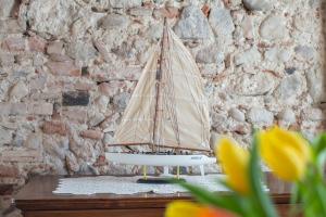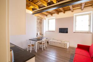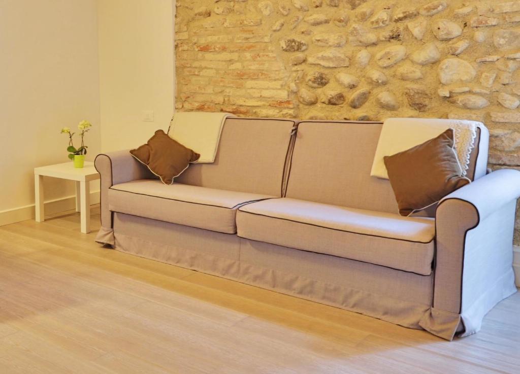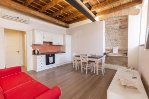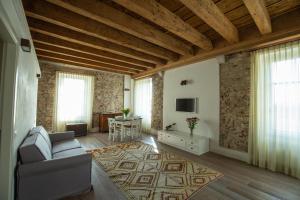 Moderno appartamento climatizzato con 1 camera da letto, soffitti con travi in legno a vista, pareti in pietra, TV a schermo piatto e angolo cottura con forno, lavastoviglie e frigorifero. La sistemazione presenta un bagno privato con doccia, bidet e asciugacapelli.