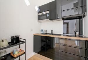 Questo appartamento con aria condizionata comprende 1 camera da letto e 1 bagno con bidet, doccia e set di cortesia. La cucina prevede frigorifero, forno e microonde, più macchina da caffè e bollitore elettrico.