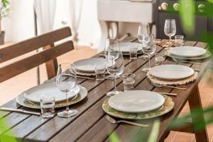 Questa casa vacanze presenta un giardino, il barbecue, il WiFi gratuito e un parcheggio privato gratuito. Questa casa vacanze con aria condizionata comprende 2 camere da letto, un soggiorno, una cucina con utensili, frigorifero e macchina da caffè, e 1 bagno con doccia e set di cortesia.