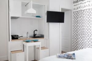 Ogni alloggio presenta un bagno privato con bidet, l’aria condizionata, una TV a schermo piatto e un frigorifero.