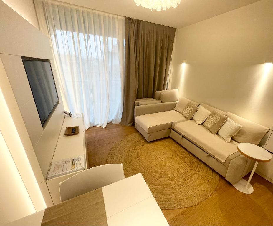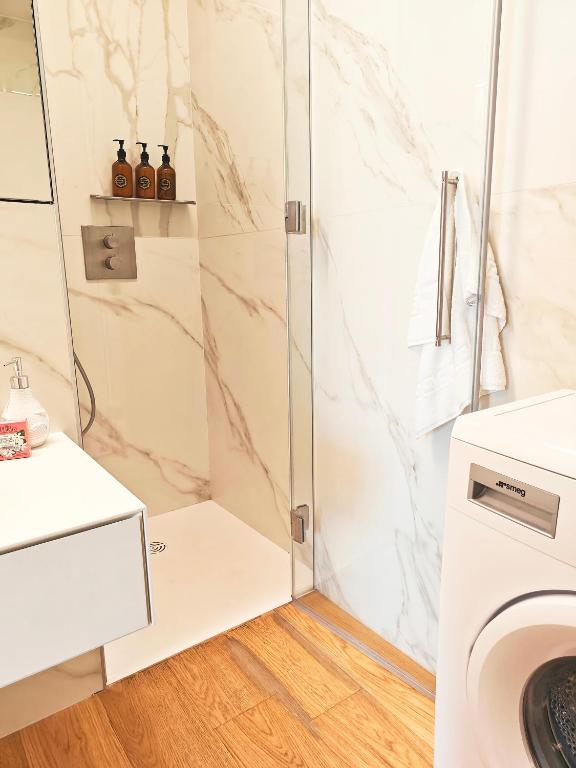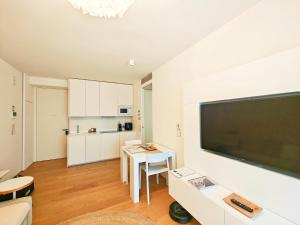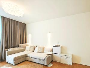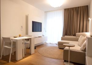 This luxurious apartment features an infinity pool, a hot tub and a sauna. This spacious apartment comes with 1 living room, 2 separate bedrooms and 1 bathroom with a bath and a shower. Guests can make meals in the kitchen that features a stovetop, a refrigerator, a dishwasher and kitchenware. This apartment is air-conditioned and has a seating area with a flat-screen TV, a washing machine, soundproof walls, a tea and coffee maker, as well as a wardrobe. The unit has 3 beds.