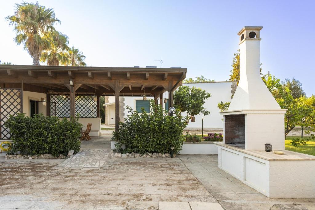 Questa villa prevede 3 camere da letto, 3 bagni, lenzuola, asciugamani, una TV, una cucina con utensili e una terrazza con la vista sul giardino. Piazza Sant'Oronzo è a 36 km da questa villa, mentre Castello di Otranto si trova a 14 km dalla struttura.