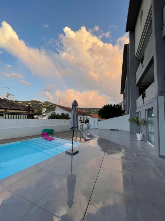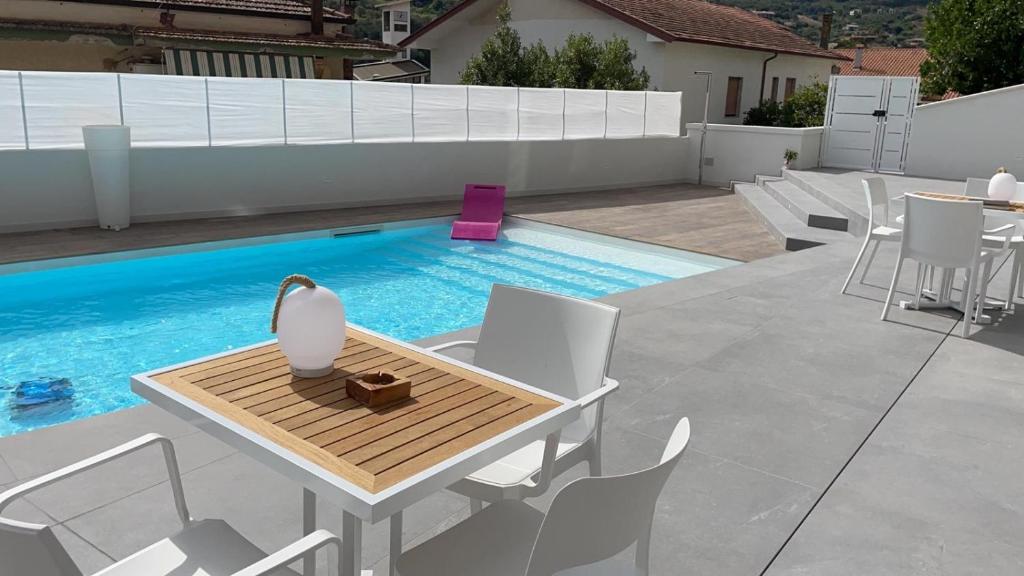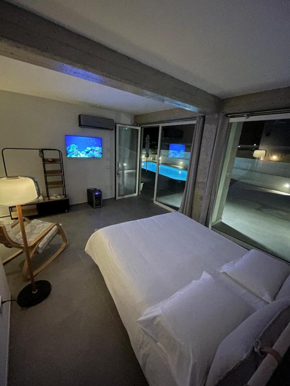 Camera matrimoniale provvista di una piscina con vista. Questa sistemazione climatizzata offre anche una TV a schermo piatto con servizi di streaming, un bagno privato e una terrazza con vista sul giardino. Presenta 1 letto.