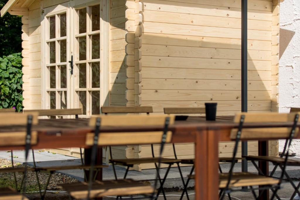 Questa camera matrimoniale/doppia con letti singoli climatizzata dispone di scrivania, zona pranzo all'aperto, vista sul giardino e bagno privato. Presenta 2 letti.