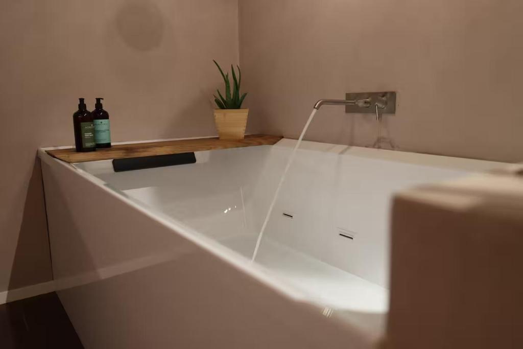 This apartment's special features are the hot tub and the spa bath. Featuring a private entrance, this air-conditioned apartment consists of 1 living room, 1 separate bedroom and 1 bathroom with a shower and a hairdryer. Guests can make meals in the kitchenette that is equipped with a stovetop, a refrigerator, a dishwasher and kitchenware. The apartment features tiled floors, a seating area with a flat-screen TV, a tea and coffee maker, a dining area, as well as a wardrobe. The unit offers 2 beds.