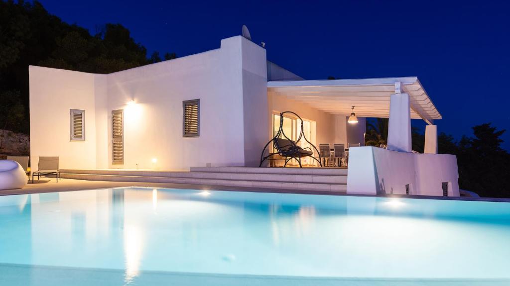 Questa villa presenta piscina privata, giardino, barbecue, WiFi gratuito e parcheggio privato gratuito. Questa villa prevede 4 camere da letto, 4 bagni, lenzuola, asciugamani, una TV con canali satellitari, una zona pranzo, una cucina con utensili e una terrazza con vista sul mare.