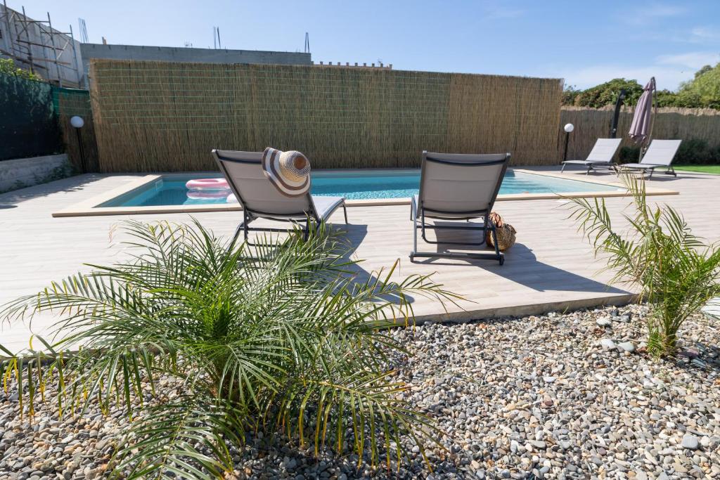 Questa villa con aria condizionata comprende 3 camere da letto, un soggiorno, una cucina con utensili, frigorifero e macchina da caffè, e 2 bagni con bidet e doccia. Presso questa villa troverete asciugamani e lenzuola tra i servizi offerti.